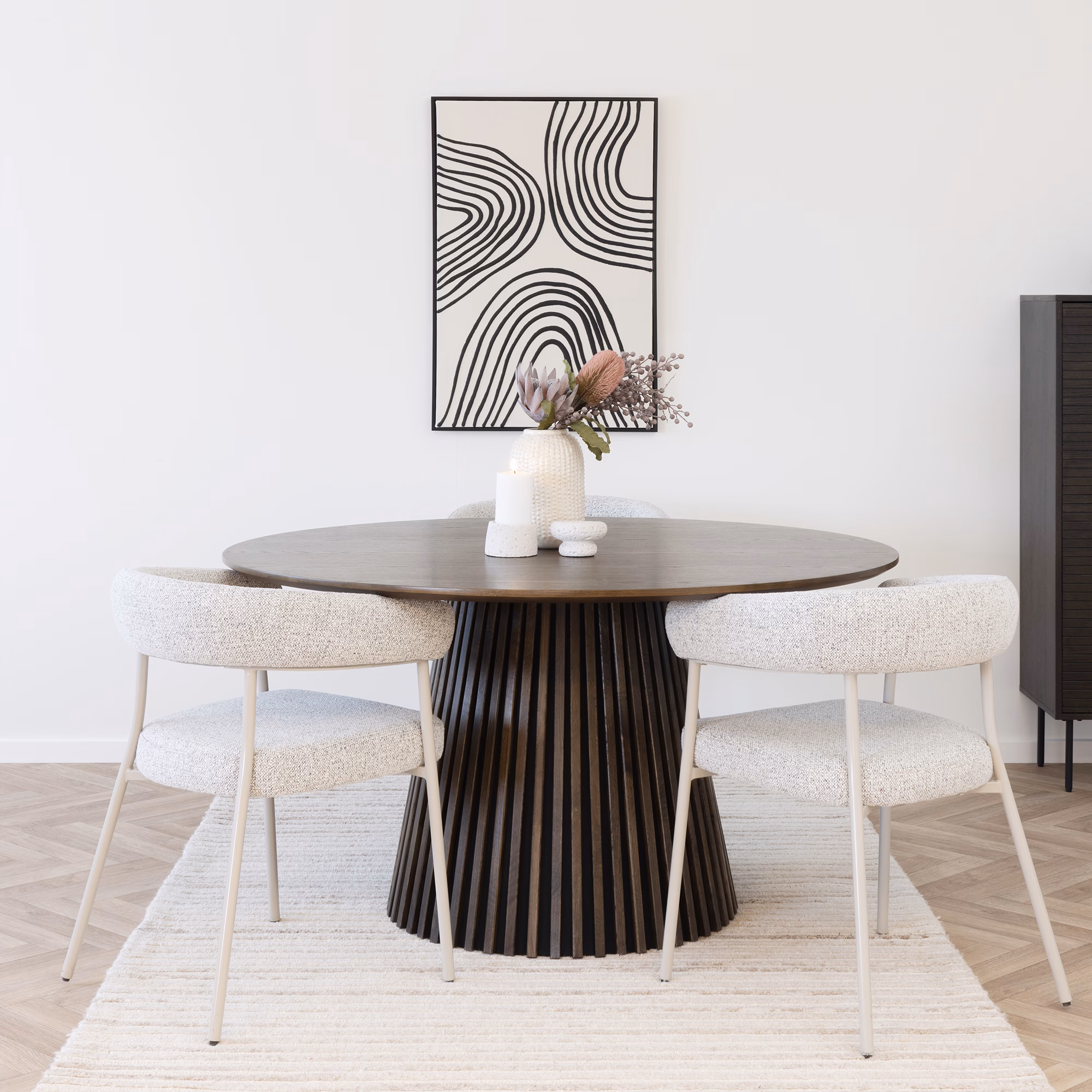 Osaka söögilaud, tamme spoon, suitsutatud, Ø140×75 cm.